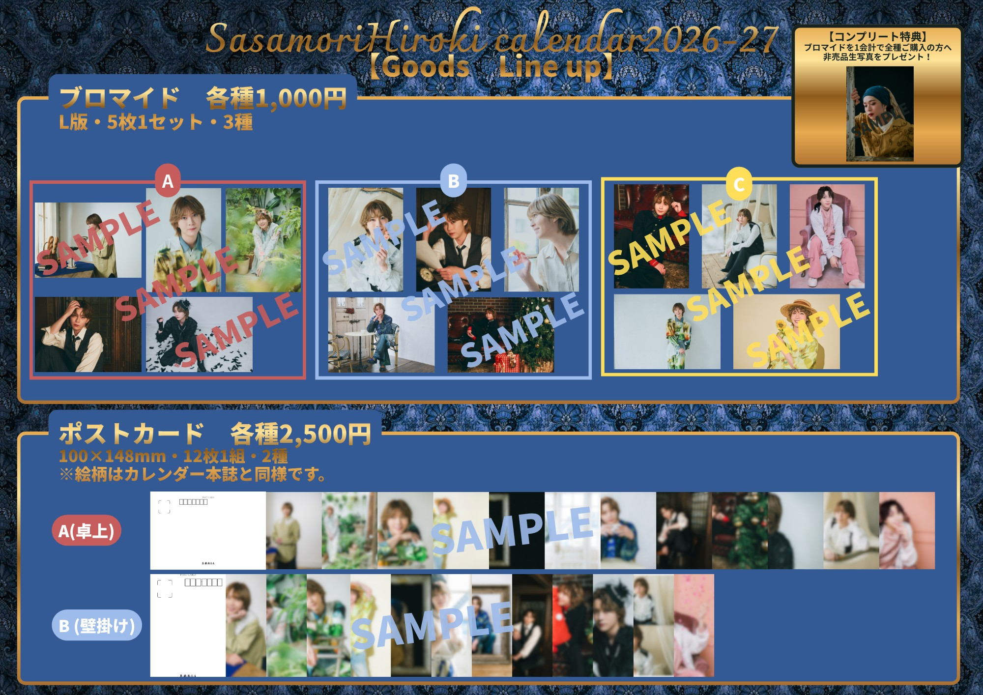 ・ブロマイドセット(A/B/C)5枚1組1,000円 ※3種同時購入で非売品生写真付き